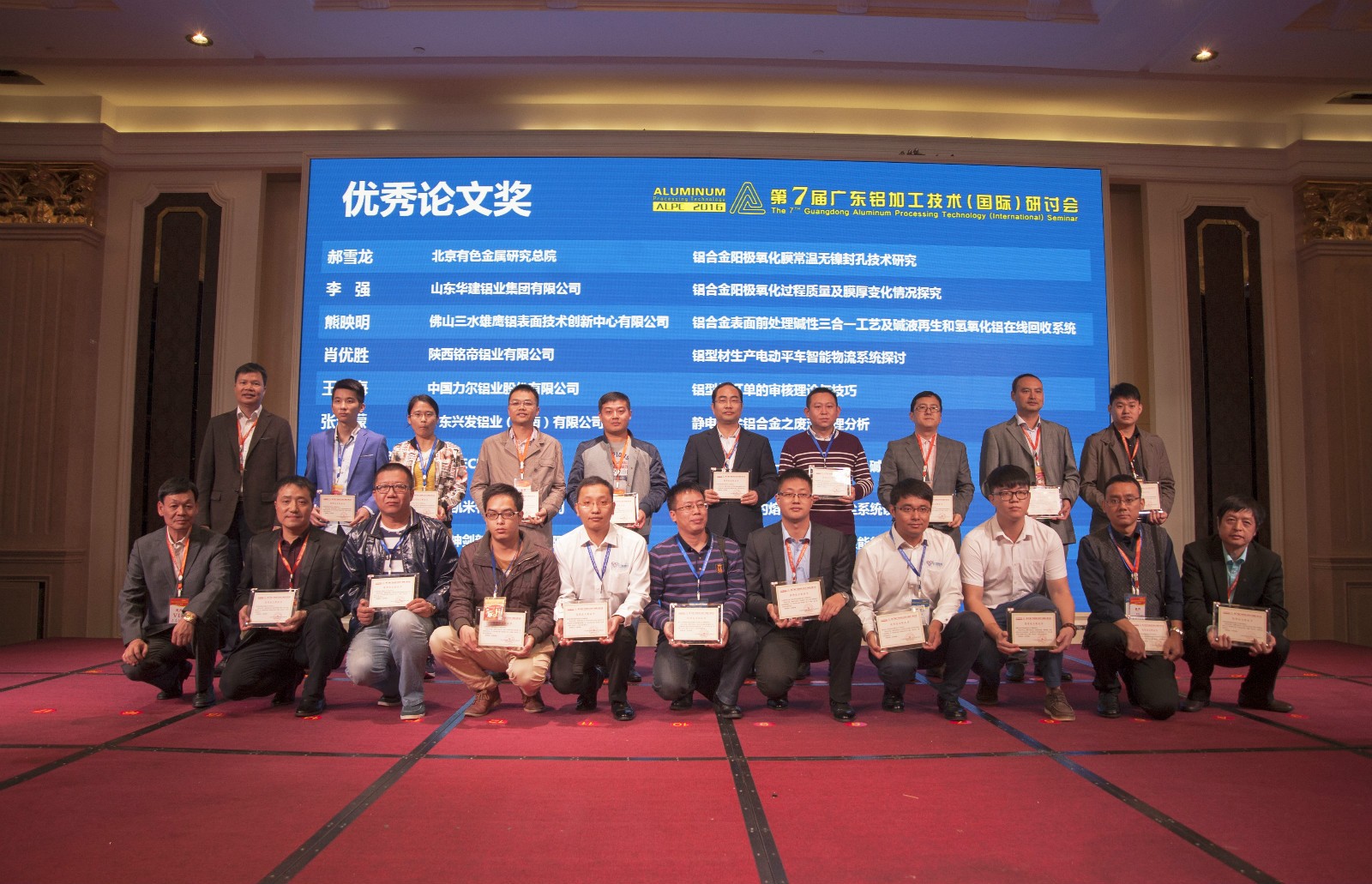 开幕式上,广东省有色金属学会铝加工专业委员会副主任委员吴锡坤先生为论文六星奖和七星奖得主颁奖。