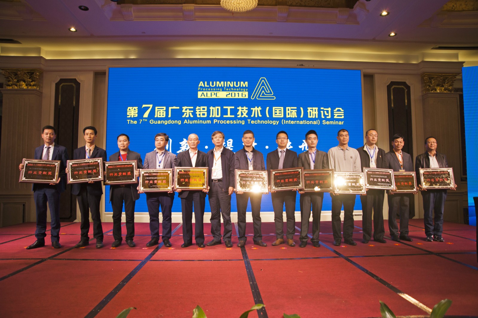开幕式上,广东省有色金属学会铝加工专业委员会副主任委员吴锡坤先生为论文六星奖和七星奖得主颁奖。 -